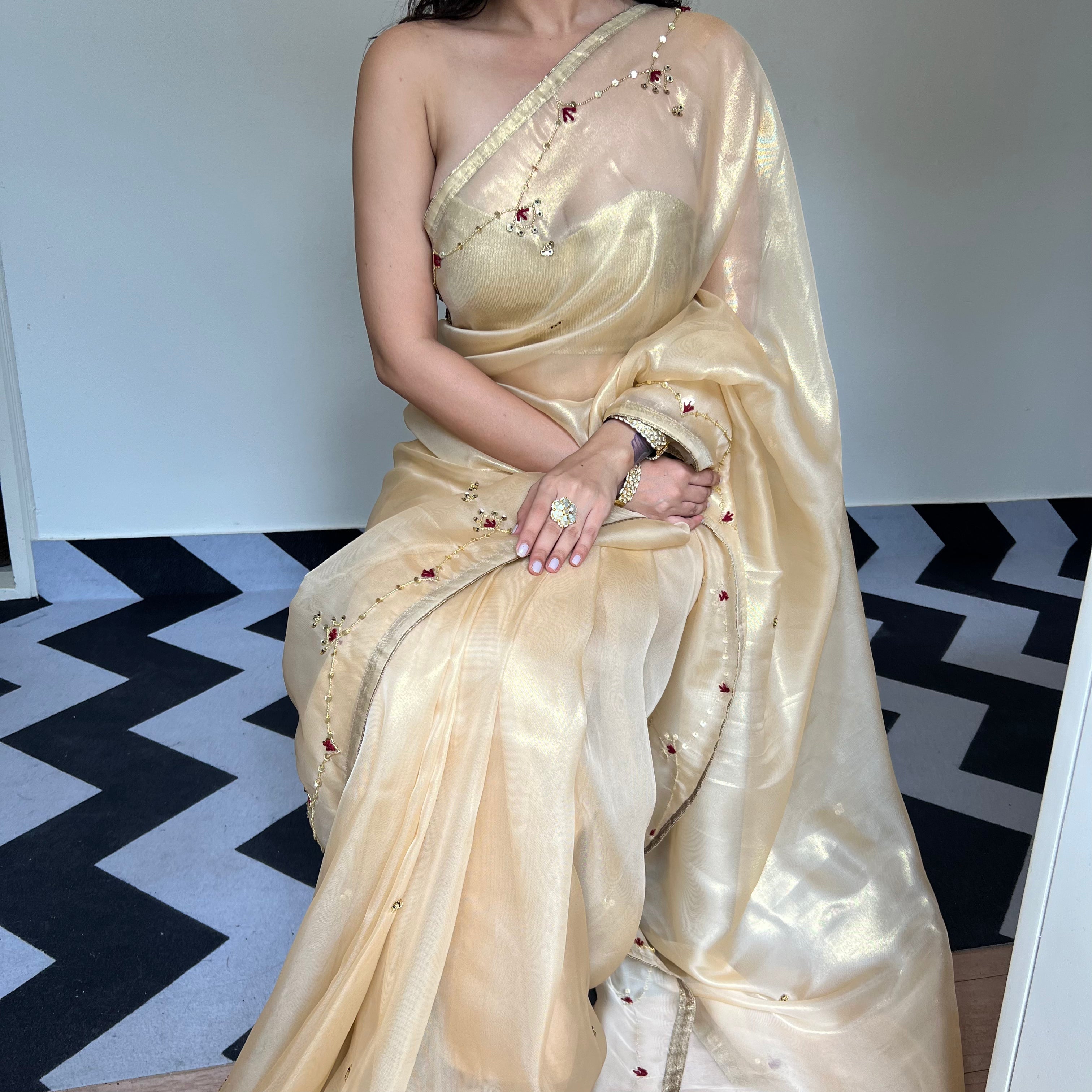 Blouse Color: Golden (same as that of saree)
