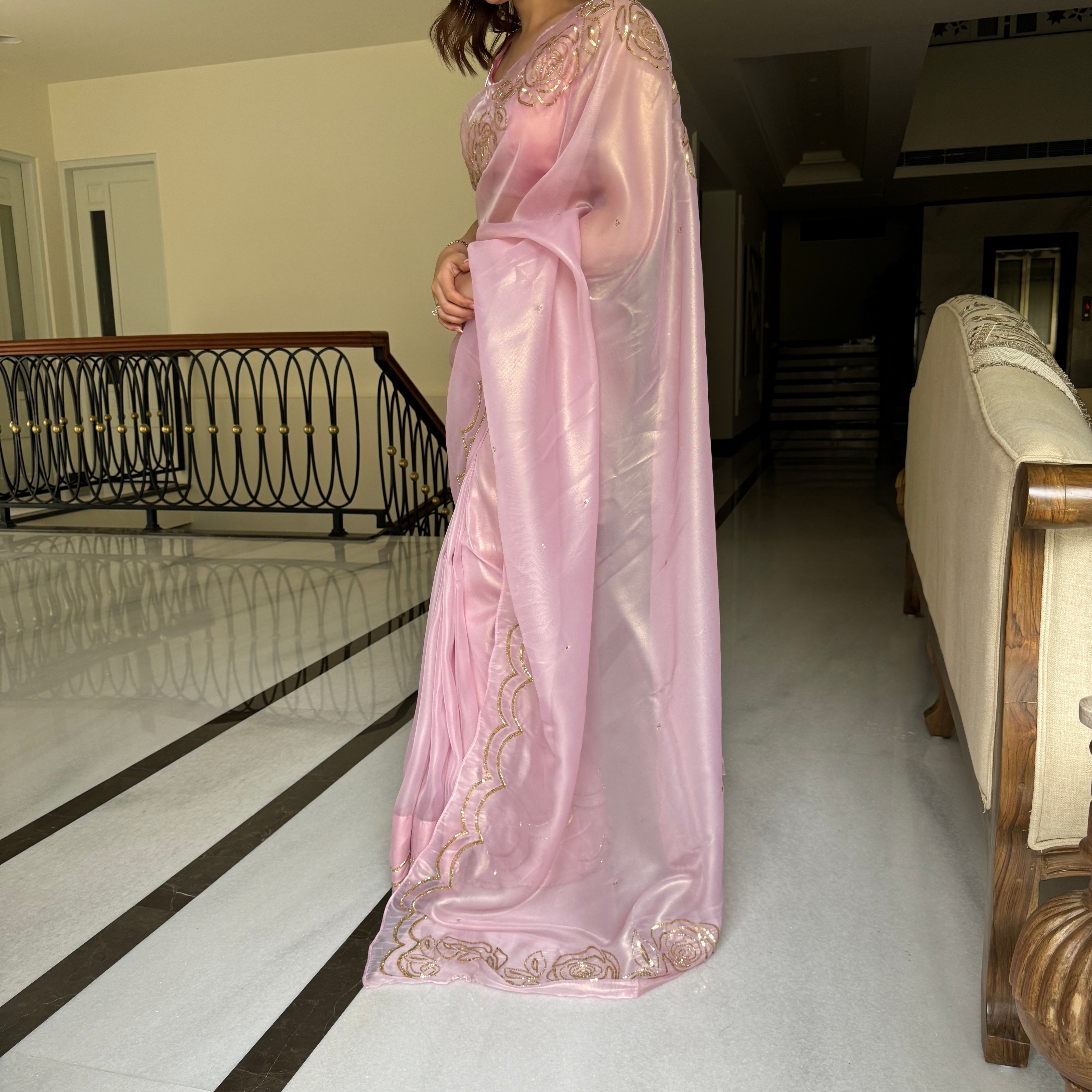 Blouse Color: Pink (same as that of saree)