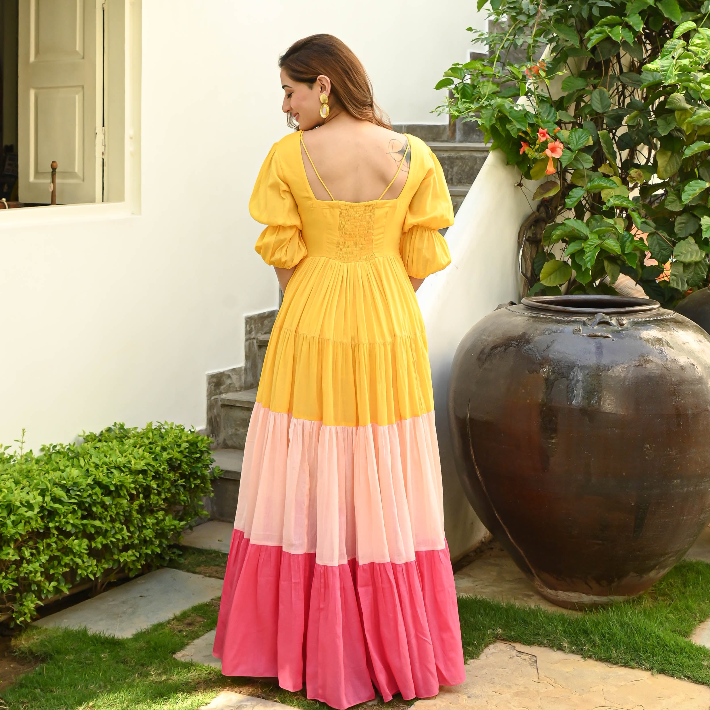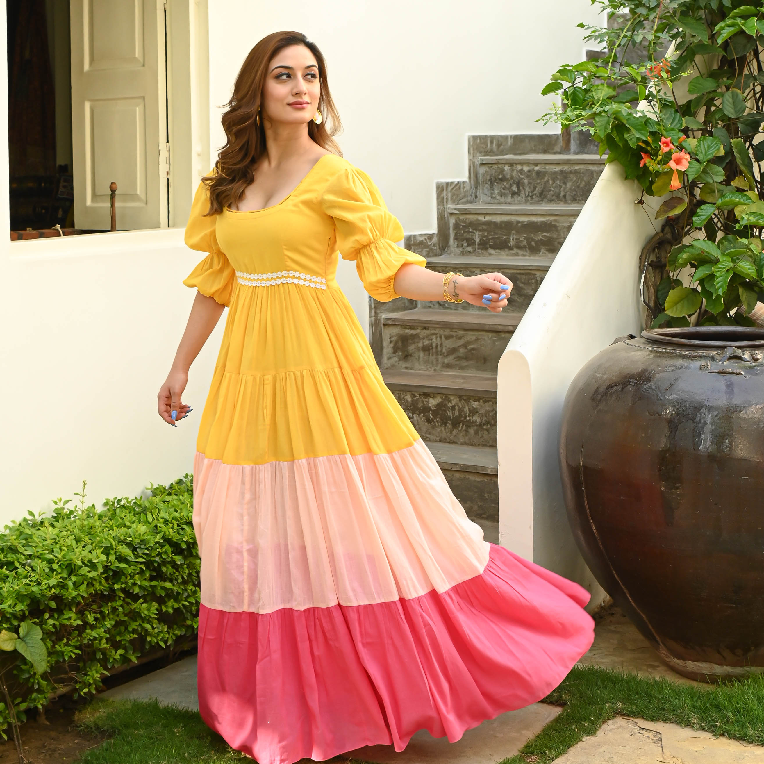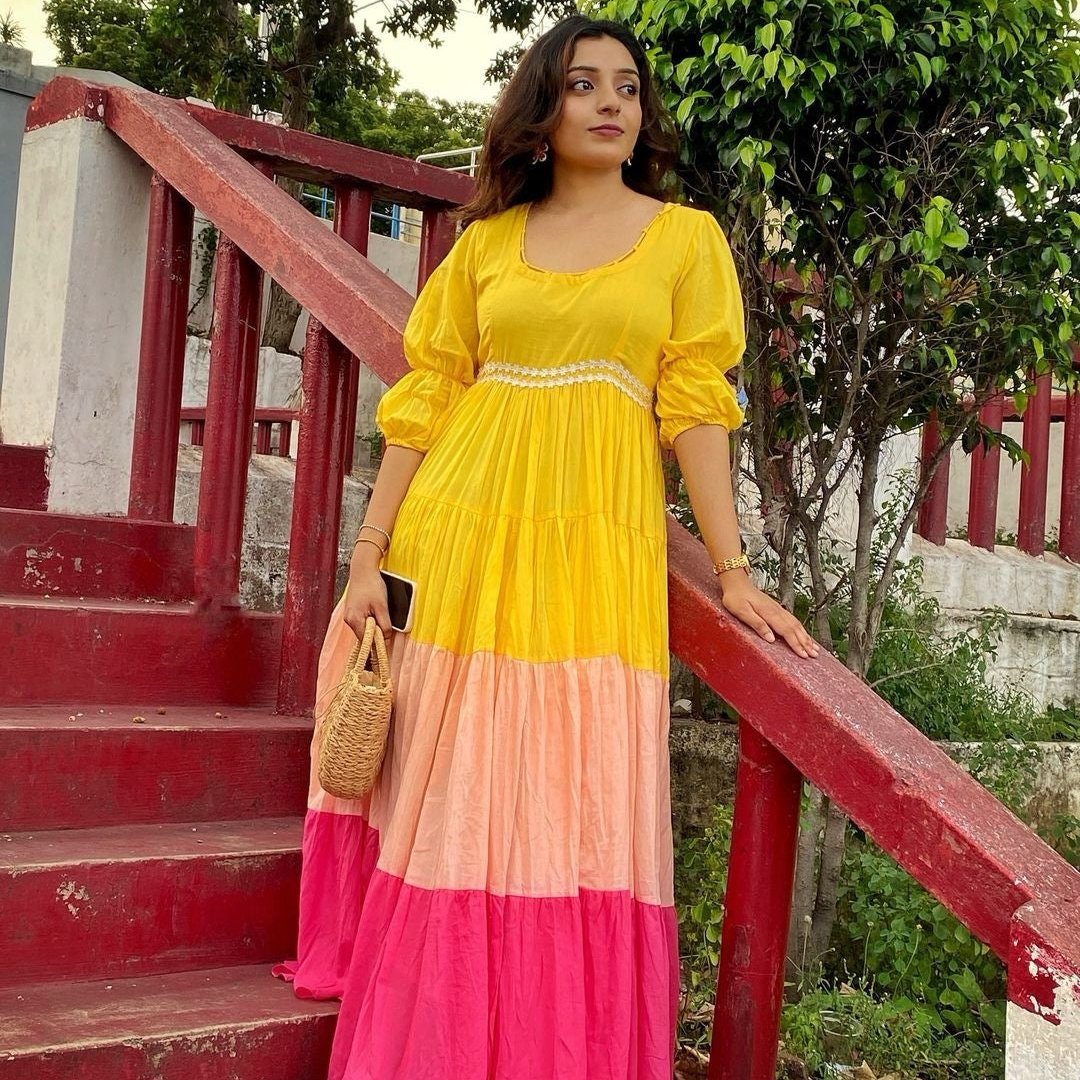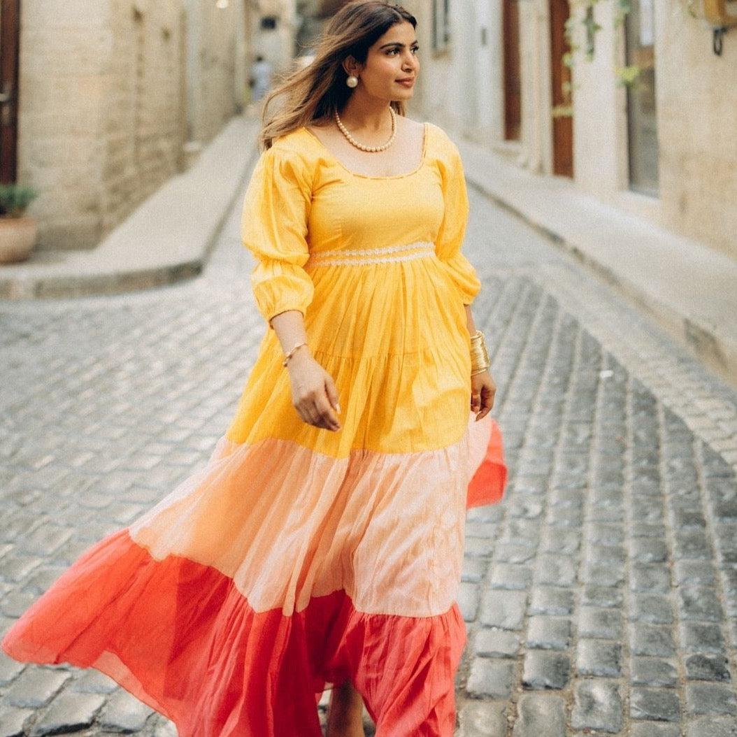 Indulge in the enchanting allure of the Mango Pink Tier Cotton Dress, a true epitome of grace and femininity. With its mesmerising four-tier design, this dress takes elegance to new heights. The deep round neck and balloon sleeves exude a sense of charm and sophistication. Adorned with delicate white lace detailing around the waist, it adds a touch of ethereal beauty. And the elegant deep-back design adds a captivating twist, leaving a lasting impression.