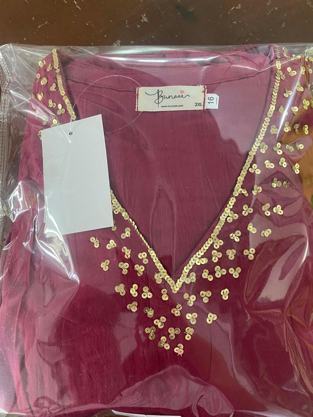 Natural-dyed colours might bleed during the first few washes or rub against the skin & other light-coloured garments. In the artful process of hand block-printing, embroidery work and stitching, variations are likely to come into existence. These irregularities are the hallmark of all handmade products and give each style a unique identity.