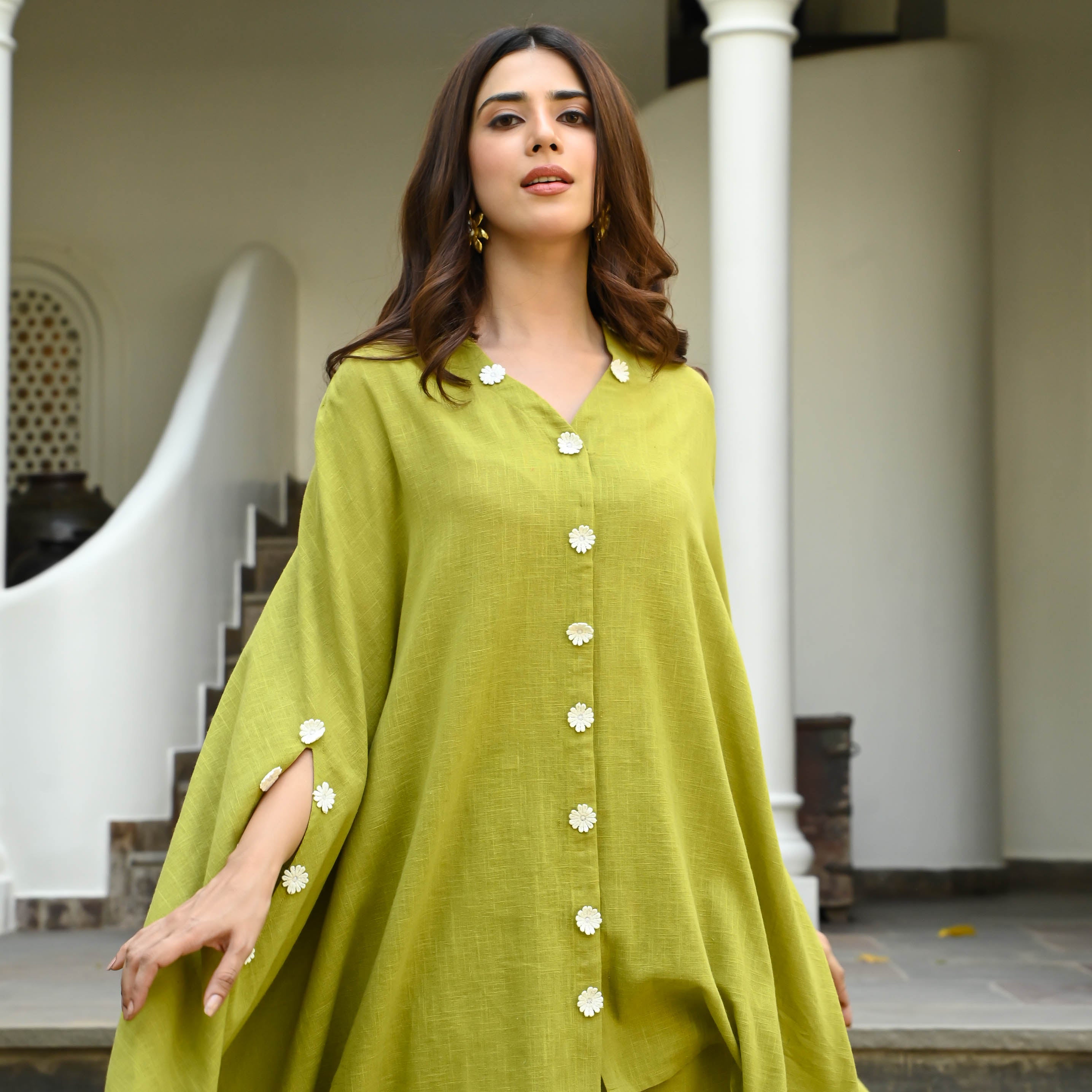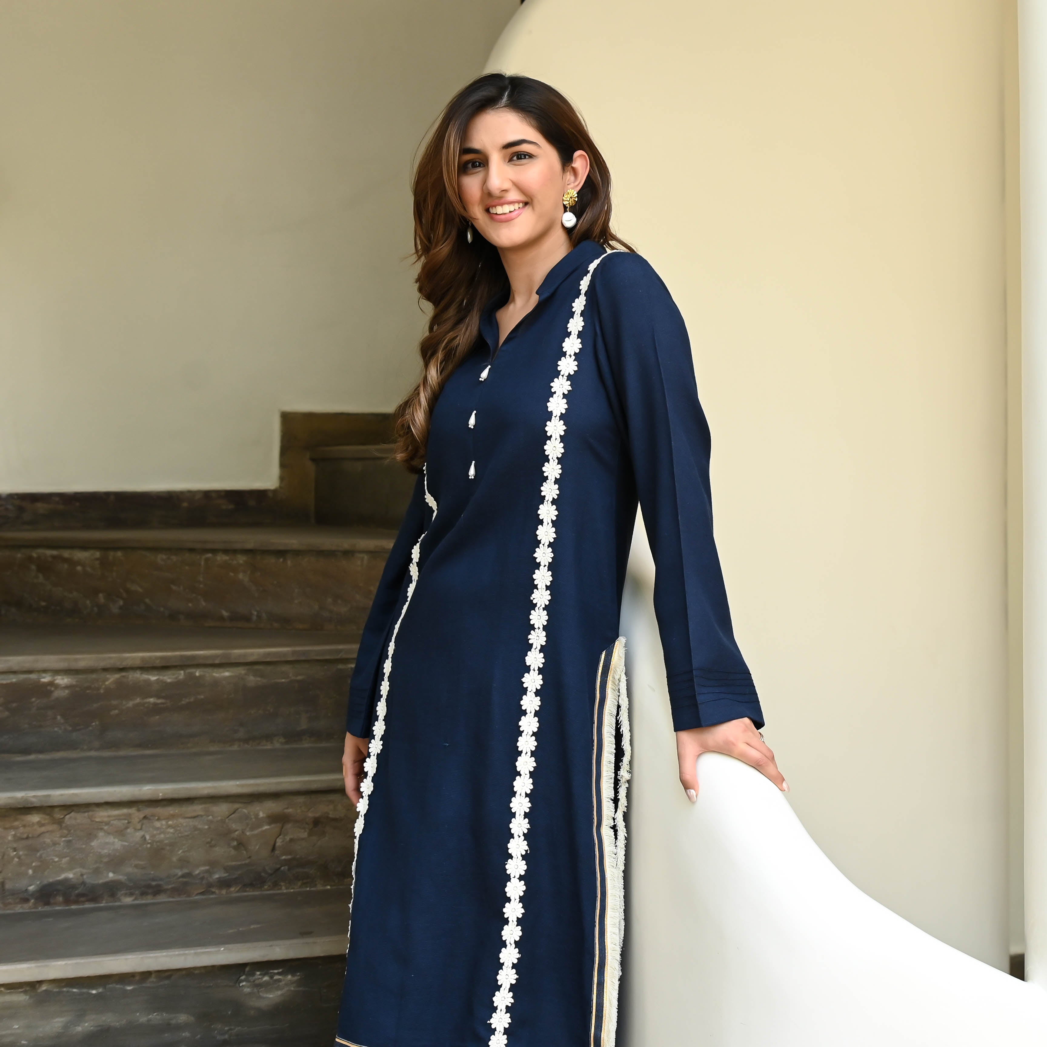 Natural-dyed colours might bleed during the first few washes or rub against the skin & other light-coloured garments. In the artful process of hand block-printing, embroidery work and stitching, variations are likely to come into existence. These irregularities are the hallmark of all handmade products and give each style a unique identity.