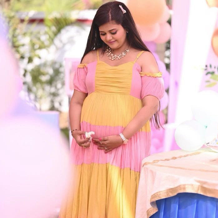 Can an outfit be everything at once? YES. A dress that is both contemporary and cute! The Amelia Pink Yellow Maxi Dress is an off-shoulder delight. The yellow and pink tiers perfectly complement each other making this cotton dress a wardrobe essential.
