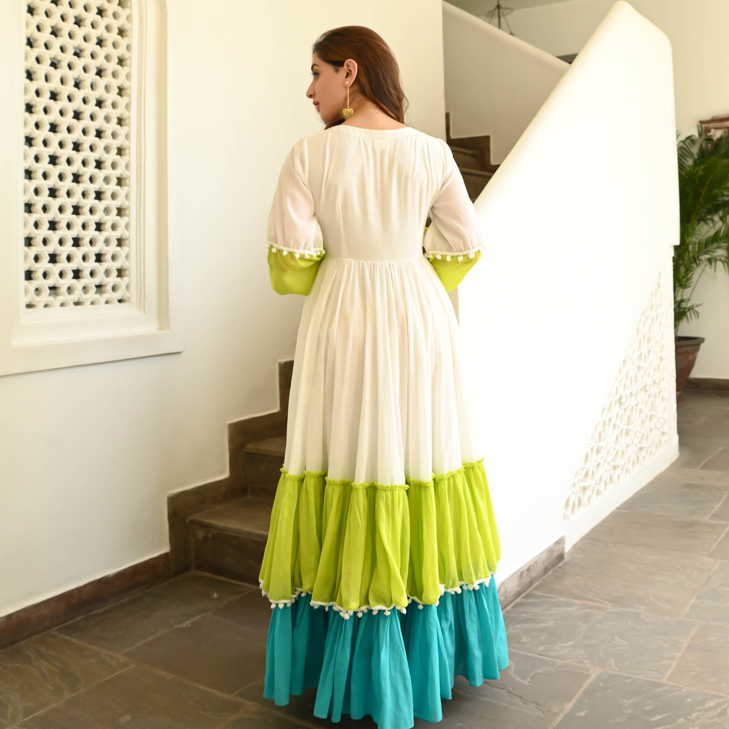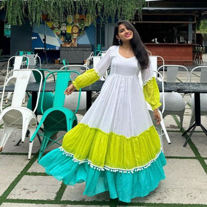 Say hello to our Mint Kiwi Cotton Tier Dress, a scrumptiously refreshing fashion treat that will make you the life of the party! This dress is like a breath of minty-fresh air on a sweltering summer day, crafted from the softest cotton fabric. Prepare to be whisked away on a whimsical adventure as the tiered ruffles dance and sway with every step and pompoms add a playful bounce to your style game.