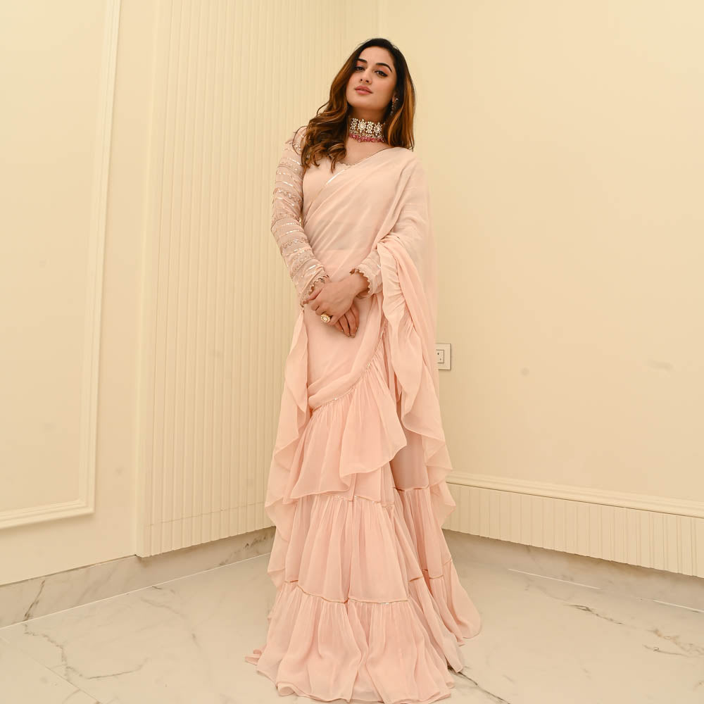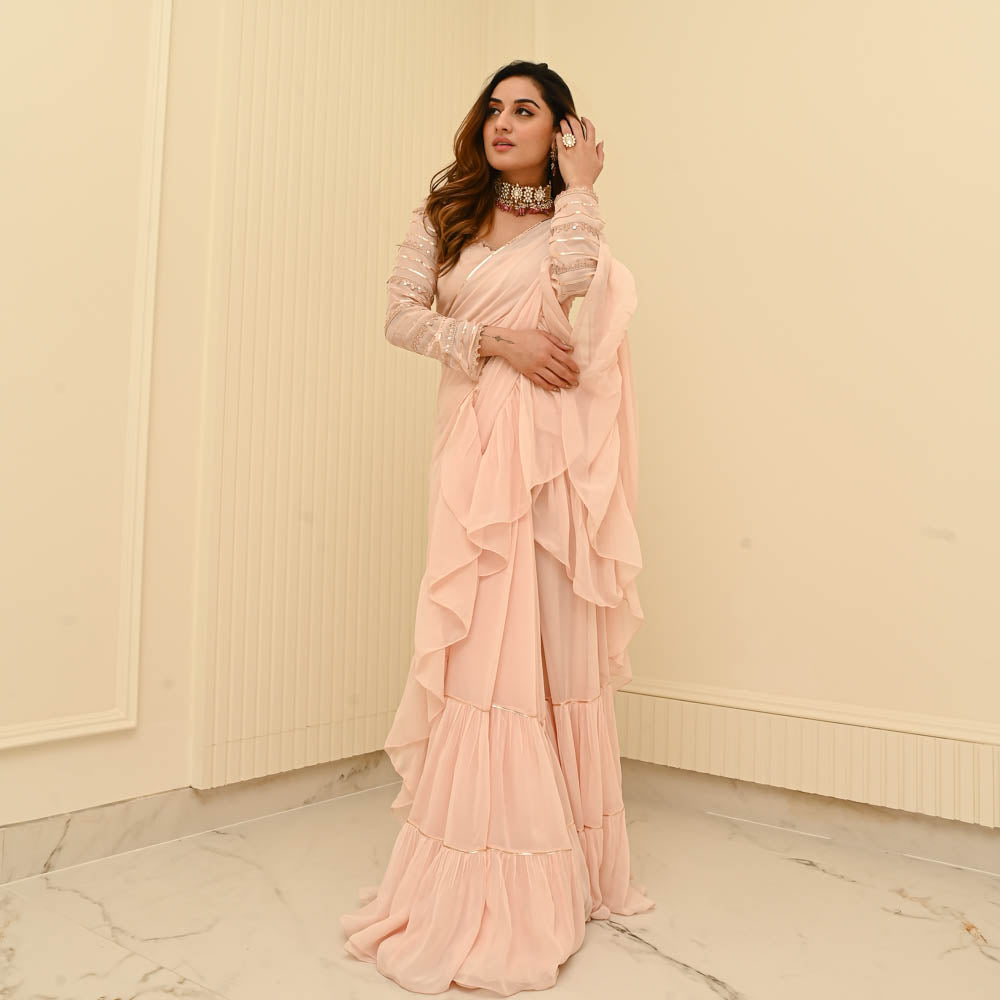 Blush Pink Designer Georgette Draped Saree For Women Online
