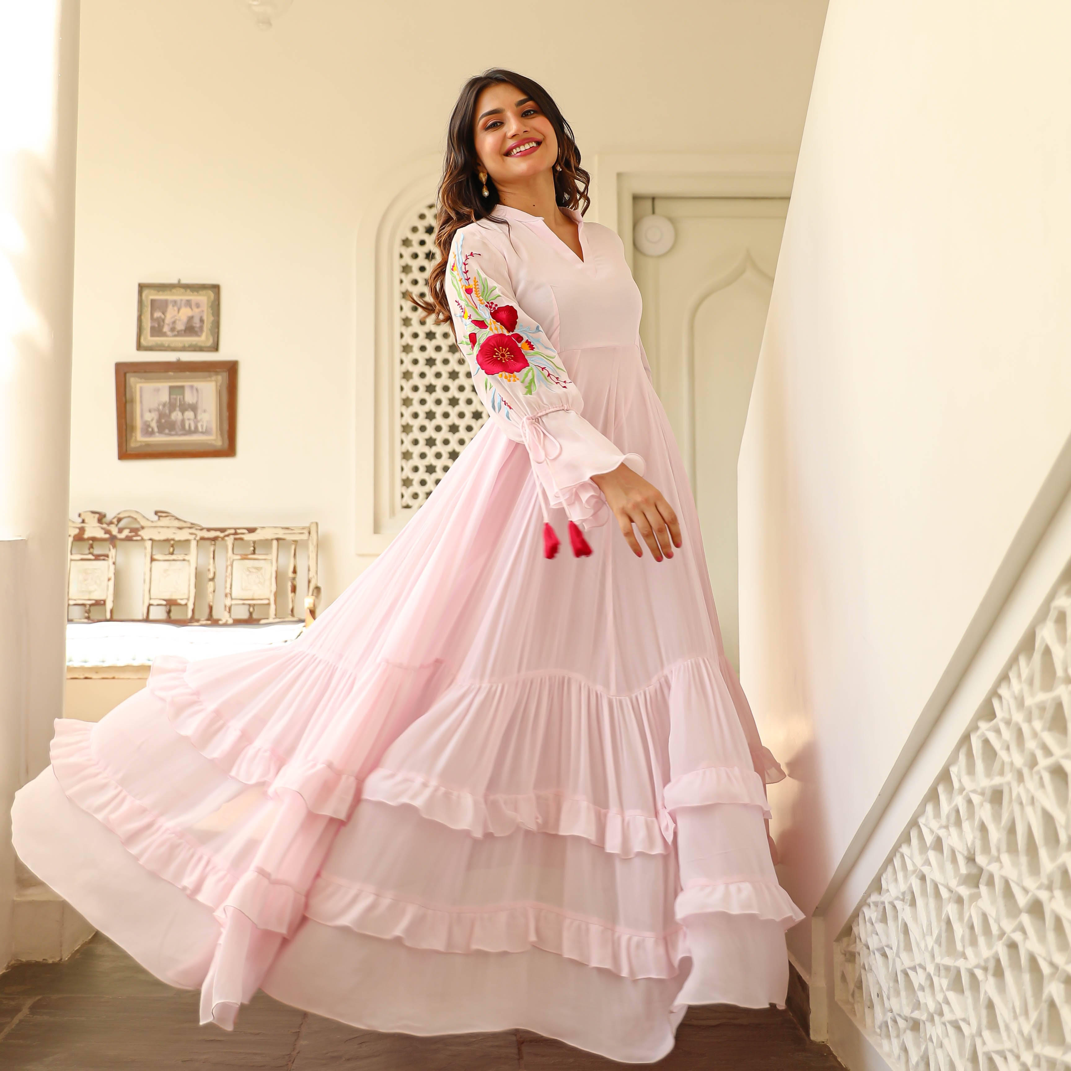 Get ready to bloom in our delightful Cherry Blossom Embroidered Dress! The light pink hue of this dress is like a gentle blush from a bashful cherry blossom. It's the perfect shade to showcase your feminine charm and embrace your inner princess. The floral embroidery is a secret garden stitched onto your dress while the soft and breathable cotton fabric makes this dress as comfortable as a Sunday morning cuddle.