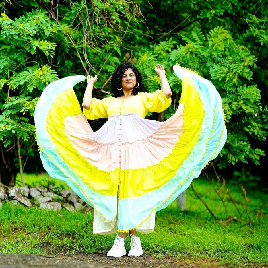 Indulge in the dreamy allure of the Pastel Shades Cotton Dress. This captivating piece features layers of multi-pastel colours that gracefully flow with every step, creating a mesmerising effect. The 3/4 puff sleeves add a touch of whimsy, while the intricate front button detailing adds a sophisticated flair. The beautiful neckline frames your collarbones with elegance, and the yellow lace adorning the end of the dress adds an extra touch of charm. Embrace the soft hues and your inner enchantress.