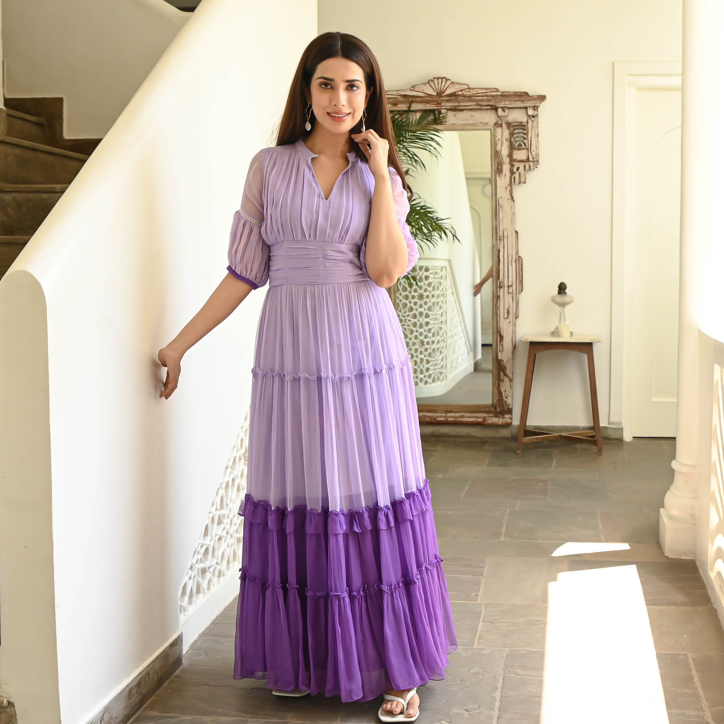 Bunaai Shades Of Purple Chiffon Maxi Dress